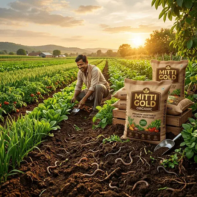 Mitti Gold Organic Vermicompost Fertilizer is a 100% natural, chemical-free fertilizer produced through the biological process of earthworms consuming organic waste. The result is a highly concentrated, nutrient-dense fertilizer called vermicast or worm castings โ one of nature's most effective soil amendments.